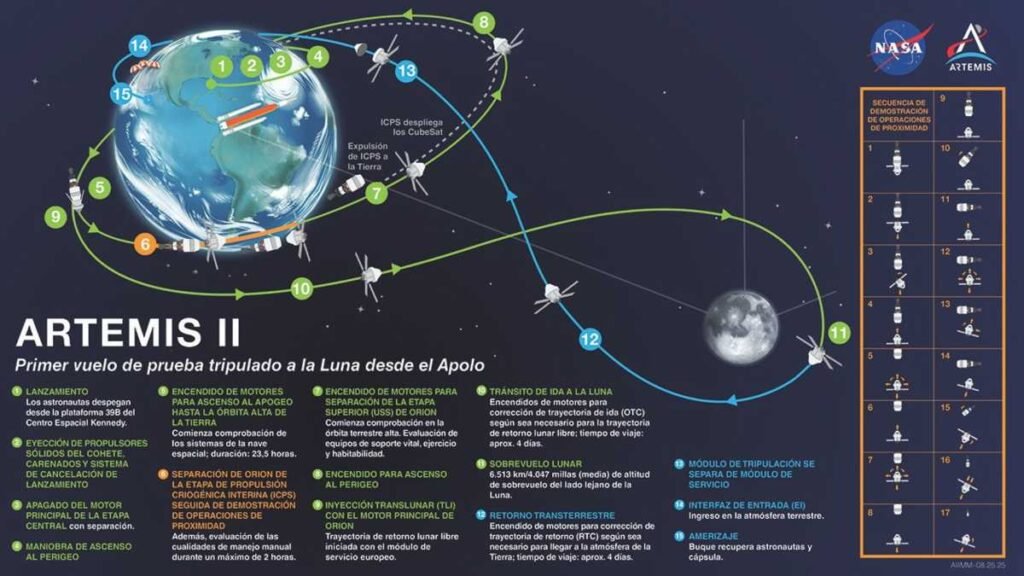 La misión Artemis II es ese evento que captará la atención del mundo. Durante 10 días, cuatro astronautas se adentrarán más en el espacio exterior para orbitar alrededor de la Luna, sin alunizar. Uno de los objetivos es probar por primera vez los sistemas de soporte vital de la cápsula Orion con humanos a bordo, mientras se produce el mayor acercamiento del ser humano a la Luna en más de 50 años.